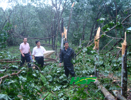今年第17号热带风暴“芭玛”肆虐了东昌农场,橡胶、胡椒等多种作物以及部分民房受到较为严重的破坏,但没有发生人员伤亡的事故。