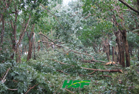 职工群众说,这得益于农场及时抓好两大工作:一是风前全场各单位组成的近200个抢险小分队迅速出动,处理道路等障碍,使风后第二天全场就恢复了通路和供电、供水,保证了干部职工的正常生活;二是全场各单位以班组和个人形式组成的清理组共800多个,迅速出动,对风后胶园进行处理,扶正半倒树和锯掉倒挂断树及拉下悬挂在树上的断枝,重新放好胶杯和钉好胶架、胶舌,为安全割胶做好充分的准备。