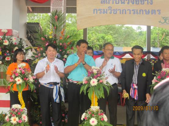 与雷勇健总经理(左二)共同参加了廊开府橡胶中央市场开幕仪式应泰国农业与合作社部的邀请,7月7日至10日,由广东省农垦集团公司总经理雷勇健率领的考察团一行4人,在泰国驻广州总领事馆及泰国农业部与合作社技术司官员的陪同下,专程赴泰国东北部的乌汶、那空帕农、莫拉限、廊开和乌隆等5府进行了考察访问。