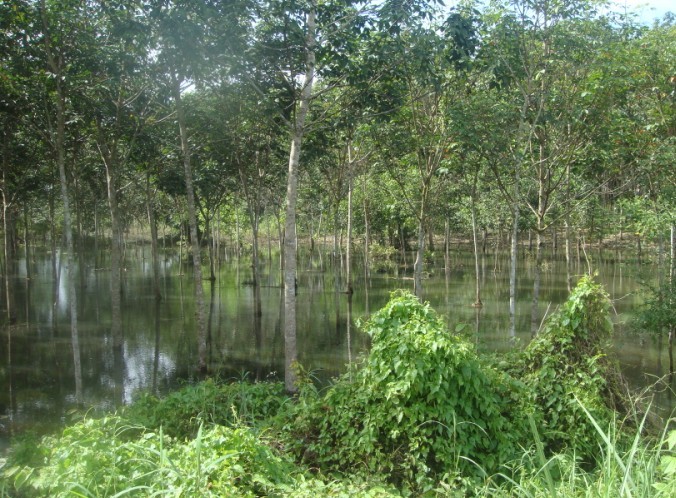 201011月初以来连续出现的恶劣天气令泰国南部地区作物遭到重创,泰国橡胶种植园至少有20,000公顷土地受到洪水和暴风雨冲击,部分胶园积水至今未退。