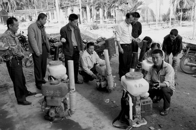 东升农场今年投入30多万元做好橡胶“两病”防治工作。图为技术人员正在修理机械设备。