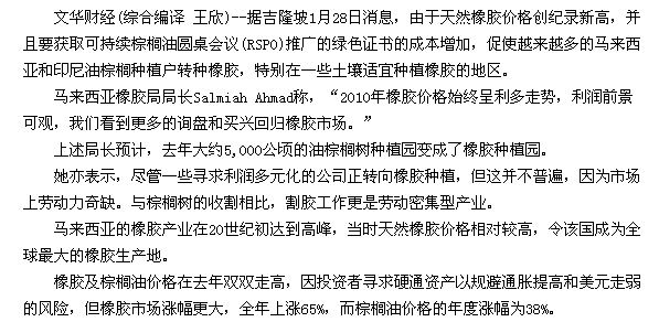 橡胶与棕榈油间价差缩窄,为橡胶产业赢得种植面积
