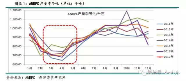 沪胶指数自1325000/吨跌至16年初10000/吨不到,供应增加趋势被压制;16年完成中等级别反弹,由于价格主升阶段发生在三四季度,供应并没有明显增加。
