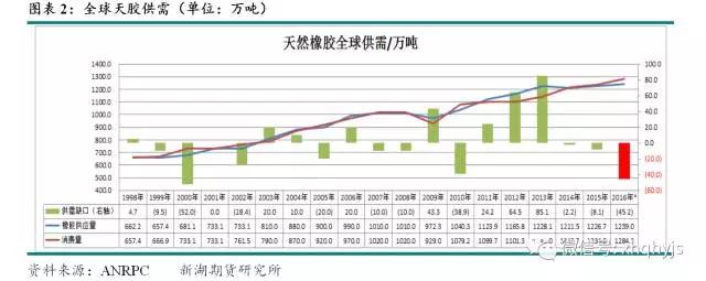 2016年年初ANRPC年初预估16年度全球天然橡胶供需平衡情况为累库存11万吨左右,实际情况是泰国、马来西亚、中国均发生减产,与此同时中国需求远超预期,16年度去库存力度达45万吨。