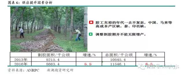 17年价格中枢接近13年,割胶面积增速5.5%,总面积增速6.5%,由于大量新增割胶树加入,单产普遍略降,另一突出问题是胶工短缺,综合来看17年种植环节供应增速4%较为合理。