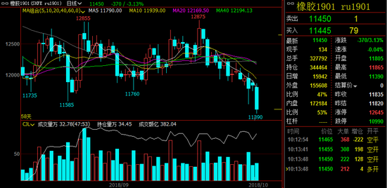 10月29日,橡胶(11395, -425.00, -3.60%)跳水,跌幅超3%。