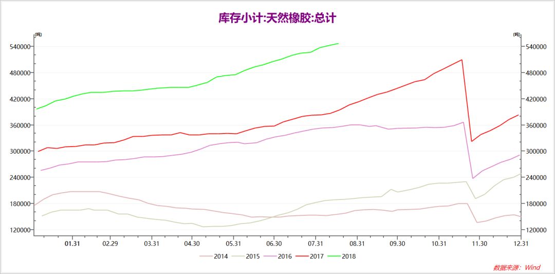而期货库存方面,上期所的天胶库存小计已经一年突破一年新高,截止8月17日,上期所天胶库存小计54.7万吨,达到历史最高值,同比去年增长38.5%。即将面对9月交割和之后的老胶注销,这个巨量的库存如何消化是多头要面对的最大的问题。