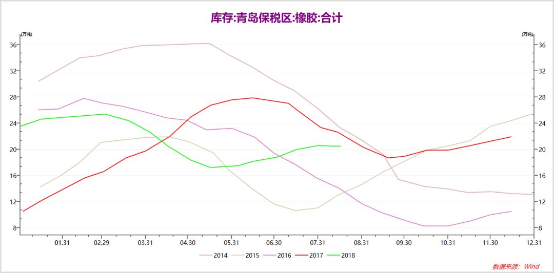 截止,2018年8月16日,青岛保税区橡胶(11770, -80.00, -0.68%)库存较7月底小幅降低0.8%约20.45万吨。青岛保税区内橡胶库存增减不一,其中丁苯橡胶库存少量减少,烟片胶库存小幅增加。