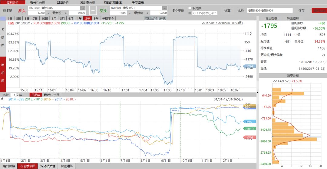 从9-1价差来看,由于之前20胶上市的消息,导致今年9-1价差又阔没有去年明显。目前9-1价差在2100-1500的范围内波动,可以在这个范围内择机选择正反套进行交易。