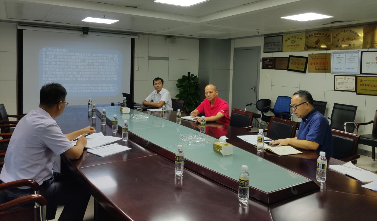 - 2019年4月25日下午,海南省省委财经领导小组办公室王飞处长莅临海南国际热带农产品交易中心(简称“农产品中心”)调研指导工作,农产品中心董事长潘黎明、总经理黄良海、副总经理陈锡华参加工作汇报。