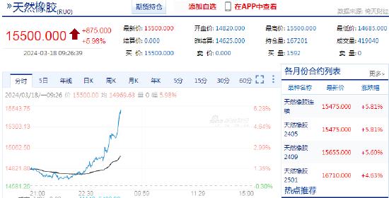 主力合约触及涨停,涨幅5.98%,报15500元/吨。